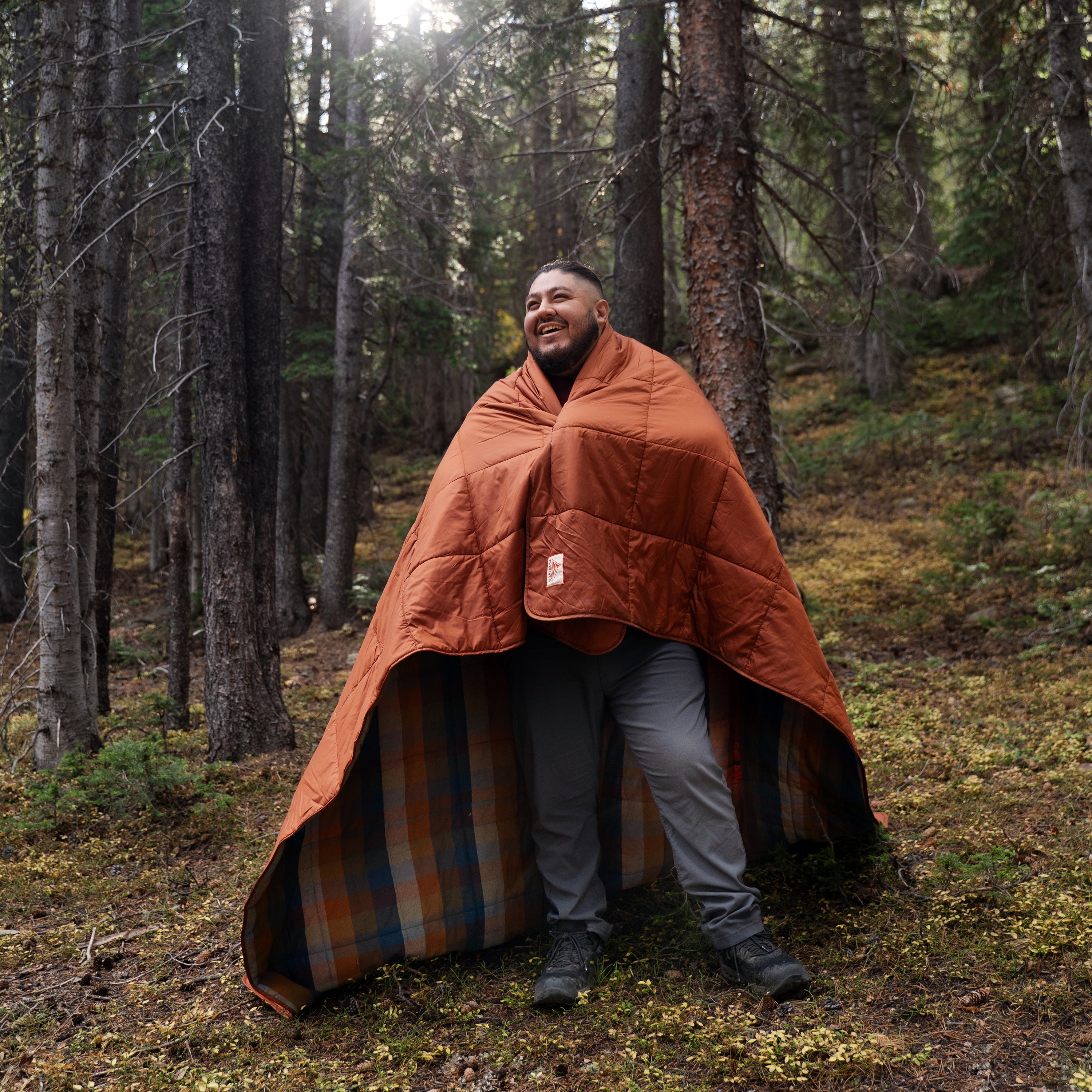 The happiest campers use our biggest, bestest blanket: the Wayback Biggie! Oversized for cozy solos or campsite cuddlers, the Wayback Biggie is truly the best of ALL worlds: durable, recycled nylon ripstop on one side, the softest organic cotton flannel on the other, and warm recycled CloudLoft ECO insulation in between. Wrap up for campfire sing-alongs, throw down for an impromptu picnic or tuck in for that decadent flannel-sheets feeling.